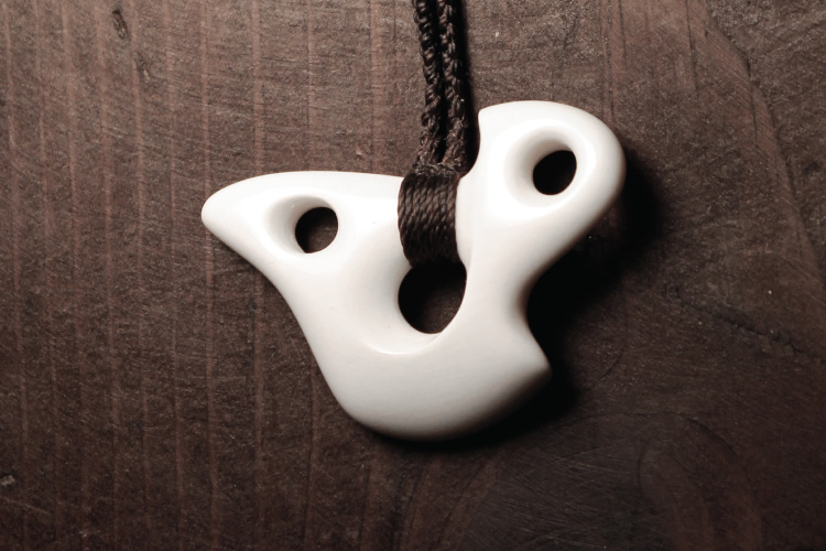 This pendant is bound by hand with a traditional style brown cord braid and features a bone toggle to hold the necklace together. Add $7.00 USD for Shipping and Handling.