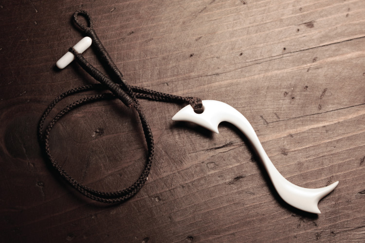 This pendant is bound by hand with a traditional style brown cord braid and features a bone toggle to hold the necklace together. Add $7.00 USD for Shipping and Handling.